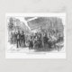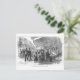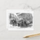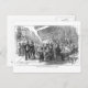 Postcard with a vintage engraving in black and white of a busy street cafe scene on Boulevard Montmartre Paris, France, circa 1870.