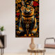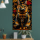 Portrait of a charming calico cat in shades of gold in the Art Nouveau style.