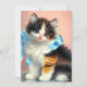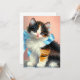 Card featuring a cute calico kitten. The kitten wears a blue ribbon while sitting adorably on a table. A perfect gift for cat lovers and Victorian art enthusiasts!
