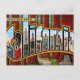 A retro, vintage postcard greeting from California set against the giant redwoods!