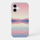 A serene retro lake scene with soft reflections and muted pastel colors.