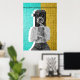 Elevate your space with this striking black-and-white photo collage. A girl drinks juice with a vintage camera for a head, set against a dynamic blue-yellow backdrop. This creative composition sparks imagination, reminding you to see life through a unique lens every day.