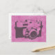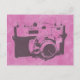 Vintage camera with pink swirls background postcard. Great for all occasions.