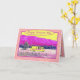 A vintage camper van, parked in a meadow with trees and mountains in the distance. The peaceful scene has been transformed with bright colourful drama. Yellow, fuchsia and light pink are the predominant colours in this vibrant work of art. A pretty polka dot pattern background, in pink, purple, and sunshine yellow, provides the grand finale. This fun card includes templates for names, date, and greeting. The inside greeting default is: Best wishes for a Happy Mother's Day and many fun adventures ahead. Please update the back template.