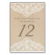 This absolutely gorgeous Wedding table number card has the look of vintage, grunge distressed and weathered canvas as the background. On top of the "canvas" to both the top and bottom edges, is a delicate ivory or pale cream colour lace pattern incorporating leaves, roses and decorative scrollwork. The overall feel of this beautiful table number card is both elegant and rustic. Please note that this vintage canvas and lace look card is entirely printed, there is no lace fabric on the card and it is one single layer. Other versions and co-ordinating items are available. Please use the "send message" or "contact" links if you require any assistance in customising any of our products.