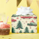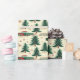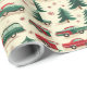 This festive wrapping paper features a delightful design showcasing vintage cars nestled among evergreen trees and snowflakes, perfect for holiday gift-giving celebrations.