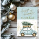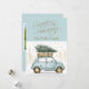 Your friends and family will adore this fun Vintage Holiday card with a personalised photo on the back. This card features a fun retro watercolor car carrying a tree with splashes of gold and a pretty soft blue background.