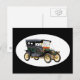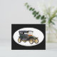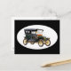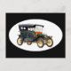 Postcard. Vintage car from the early twentieth century, the age of elegance. This classic, historic automobile has green and black paintwork, buttoned leather upholstery and a black fabric convertible soft top canopy.