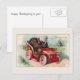 I designed this Postcard using a print of a vintage image of a red open car with a tom and hen turkey in it. It has an old fashioned look that adds charm. On the other side are the words Happy Thanksgiving To You.