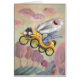 Vintage Monster Automobile. Broom, broom... Engine is working, speed is high - here we go on the ride of our lives. Three monster friends just jumped into yellow vintage old timer vehicle. One monster is big and furry, second is medium sized and he wears blue pyjama, and third on is really small fellow. Together they are fans of vintage automobiles. They love making trips around country side, especially when weather is nice - sun is shining and clouds are smiling. They are just enjoying their old school yellow car. Way to go, my friends!