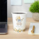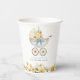 Elegant vintage carriage paper cup with soft yellow florals and a classic blue bow. Personalized details make it a timeless choice for a charming baby shower celebration.