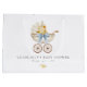 A charming large baby shower gift bag featuring a vintage baby carriage, soft blue accents, and personalized text. Perfect for presenting thoughtful gifts with an elegant, coordinated look your guests will love.