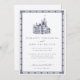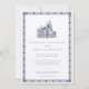 Impress your guests with this elegant formal wedding invitation by JessicaAmber. This silver card features a detailed vintage illustration of a castle, which you can replace with an image of the destination you will be married at (transparent or white background preferred). Elegant dark blue lettering displays the bride and groom names, and details of the wedding, including the location, date and time. A decorative border completes the design. This invitation is preferred for when the couple are hosting the event themselves.