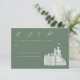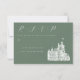Vintage Castle Illustration Sage Green Wedding RSVP Card