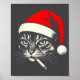 Vintage Cat Smoking Cigarette Christmas Cat Santa Hat Meme