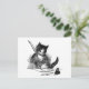 This vintage black and white postcard of a cat writing a letter tells your friends how much you miss them.