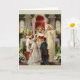 Retro / Vintage Wedding greeting card. Couple being married in a beautiful church as Jesus gives a blessing.