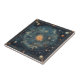 A richly detailed antique-style celestial map featuring the Sun at the centre, surrounded by concentric orbital paths of planets including Saturn, Neptune, Uranus, Pluto, and the Moon. Constellations, stars, and zodiac symbols are intricately illustrated against a deep blue background, accented in gold and warm tones. Perfect for astronomy lovers, astrology enthusiasts, and fans of vintage cosmic art, this ceramic tile captures the timeless beauty of the night sky and celestial navigation.