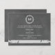 A vintage inspired monogram wedding invitation featuring a chalkboard inspired background on front and back. Personalise the white text with details of your occasion. Monogram inside frame at top.