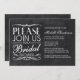 Chic vintage-style bridal shower invitation with trendy vintage typography poster design against a chalkboard background.
