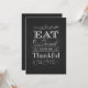 Elegant old fashioned invitations to a Thanksgiving Dinner or any occasion to be grateful for. Text on the front reads "Eat, Drink and be Thankful." Text on the reverse is fully customisable. Beautiful antique finish is vintage American.
