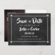 Personalise with your names and details on this cool chalkboard save the date card featuring cute cupids.