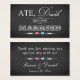 This trendy black and white chalkboard style wedding favour thank you tag has vintage typography in a variety of fonts with scrolls and pink and blue hearts on it. It has a fun new take on the Eat, Drink and be Married trend, with a little play on words that say "Ate, Drank, And Got Married" to reflect the earlier wedding event. It matches the wedding invitation shown below. Add your own thankyou message on the back. If you require any changes or other matching items, please email your request to niteowlstudio@gmail.com.