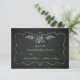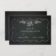 This elegant wedding response card has a vintage look with a chalkboard background and chalk style floral drawings. An ornate frame encloses all the details. Timeless design that can be used at any time of the year.