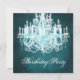 Beautiful teal blue chandelier birthday party invitation. This elegant vintage chandelier party invitation is easily customised for your event.