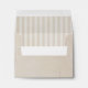This vintage style, charming design features an aged, textured, and distressed pale cream outside, while the inside is of vertical ivory and cream stripes, giving the envelope a fanciful, stylish feel. The back flap has a ticket-like outline framing your name(s) and return address. The front has been left blank for addressing and postage. This envelope was designed for a matching wedding announcement, but can be used for anything.