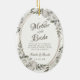 Vintage Cherish White Floral & Rose Gold Painted Roses and Flowers. A Vintage Classic and Elegant Look, and Plenty of Grey, Ivory White, Rose Gold, Dusty Pink, Pine Green, and Grey leaves and foliage. With Hand Painted Floral elements, Vintage Classic Script Fonts and Rose Gold Elegant Floral Oval Frame - Mother of the Bride Heartfelt Quote Keepsake Ornament!