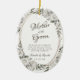 Vintage Cherish White Floral & Rose Gold Painted Roses and Flowers. A Vintage Classic and Elegant Look, and Plenty of Grey, Ivory White, Rose Gold, Dusty Pink, Pine Green, and Grey leaves and foliage. With Hand Painted Floral elements, Vintage Classic Script Fonts and Rose Gold Elegant Floral Oval Frame - Mother of the Groom Heartfelt Quote Keepsake Ornament!