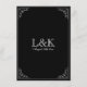Vintage chic flourish border wedding menu template. Elegant template with classy script typography. Beautiful design for couples getting married in classic retro style. Part of matching set. Change colour palette to match your theme. Black and white example with swirly corners.