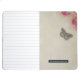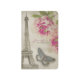Personalised journal with vintage chic design featuring a French antique style illustration of pink peonies and butterflies over the Eiffel Tower in Paris. Add your own name or custom text on the cover!