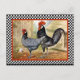 Vintage illustration of a rooster and hen chicken in the barnyard pecking for food.