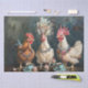 In the midst of a serene rain-kissed setting, the “Raindrop Rendezvous” captures a trio of chickens, each adorned with their own unique regalia. The golden-brown hen on the left boasts a vibrant red comb, reminiscent of a crown, while the speckled middle chicken wears a headdress of blue and red, paired with a necklace of colourful beads. The white hen on the right, with hints of brown, mirrors the middle one with a large red comb and matching beaded adornment. Arrayed before them are the trappings of a quaint tea party: cupcakes crowned with strawberries, elegant teacups on saucers, and beads that echo their necklaces. The dark backdrop, streaked with the trails of rain, adds a touch of melancholy to the otherwise whimsical gathering, creating a poignant contrast that enchants the viewer.