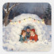 Vintage Children in Snow Fort Square Sticker