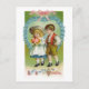 Nostalgic restored vintage Valentine card featuring two children encircled by a forget-me-not heart and pink bow with romantic Valentine greeting. Use vintage image on reverse or delete. Matching postage and greeting card available.