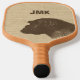Stylish personalised pickleball paddle with vintage brown tinted chimpanzee side view illustration on light tan "burlap" background. Personalise with monogram or name.