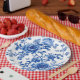 Vintage Chinoiserie Blue White Butterfly Roses Paper Plate