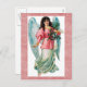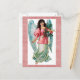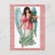 This adorable vintage image displays a Christmas angel and is set against a pink ornamental background.