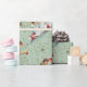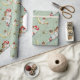 This design features a whimsical, vintage-inspired holiday motif. The pale blue-green background is adorned with scattered golden stars and twinkling flecks. The primary elements are large glittery golden crescent moon and a stylised, red and white striped candy canes that function as a slide. Small angels, which are wearing white, are depicted in two poses: one angel sits on the tip of the crescent moon, and a group of three angels are sitting on the candy cane, creating a playful and nostalgic texture suitable for wrapping paper or fabric.