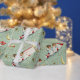 This design features a whimsical, vintage-inspired holiday motif. The pale blue-green background is adorned with scattered golden stars and twinkling flecks. The primary elements are large glittery golden crescent moon and a stylised, red and white striped candy canes that function as a slide. Small angels, which are wearing white, are depicted in two poses: one angel sits on the tip of the crescent moon, and a group of three angels are sitting on the candy cane, creating a playful and nostalgic texture suitable for wrapping paper or fabric.