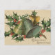 This is a vintage postcard illustration of some Christmas holly and bells.