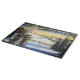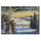 This gorgeous decorative glass cutting board has a vintage winter scene of a bird and a horse and carriage in the distance. It is one of many Christmas cutting boards available from Superkalifragilistic.