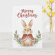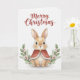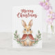 A sweet and nostalgic Christmas card featuring a gentle winter bunny dressed in a festive red cape trimmed with soft white fur. Surrounded by classic holly leaves and bright berries, this vintage style illustration brings back the warmth of traditional holiday artwork. A lovely way to send Merry Christmas wishes to anyone who enjoys charming seasonal designs with an old fashioned touch.