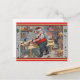 Vintage Christmas card, featuring Santa Claus in his workshop.