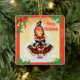 at christmass as a hanging decration for the chritmass tree.. its white porcline or cramic but very well made with added photo on one side.. also has a lovley red bag to keep it in.. execlent printed text in bold and black stands out well aganst the blue background of the photo.