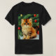 T-Shirt featuring a vintage Christmas cat! An orange kitty with black stripes sits in the snow. Behind the cat is a Christmas tree with red and yellow ornaments. Also on the snow is a red present. A perfect gift for the Christmas season and cat lovers!