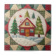 Bring the warmth and charm of a handcrafted Christmas quilt into your home with this cozy holiday patchwork ceramic tile. Featuring a delightful winter cottage nestled among festive evergreens, this design captures the nostalgic magic of the holidays. The surrounding patchwork border - made to look like lovingly stitched fabric pieces - adds a heartwarming, homespun touch. A beautiful accent piece for your kitchen, bathroom, fireplace surround, or holiday décor display, adding rustic charm and seasonal cheer to any space.